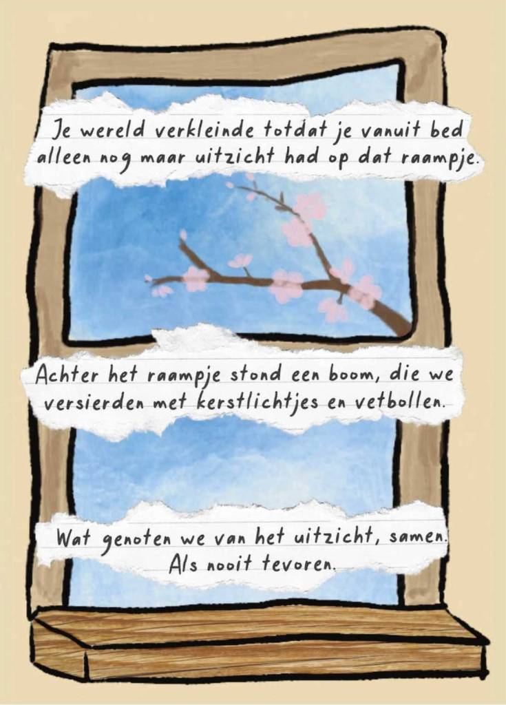 Je wereld verkleinde totdat je vanuit bed alleen nog maar uitzicht had op dat raampje.